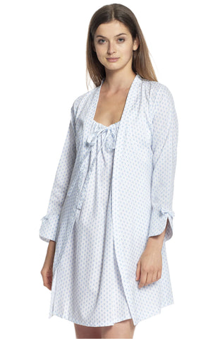 Mini Tulip Print Cotton Pique 3/4 Sleeve Short Robe in Blue