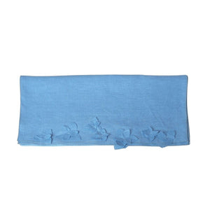 Daffodil Blossom Italian Linen Table Runner in Cerulean Blue