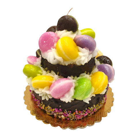 Summer Macaron Topped Chocolate Layer Cake Candle
