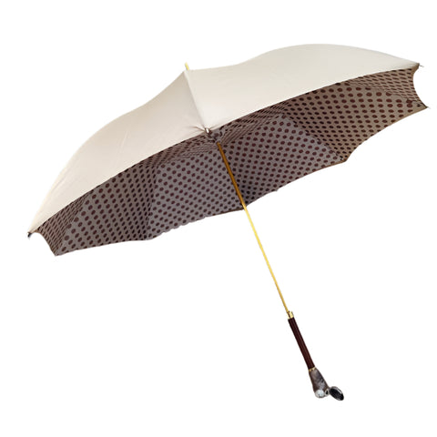 Brown Rabbit Handled Long Umbrella in Polka Dot Beige