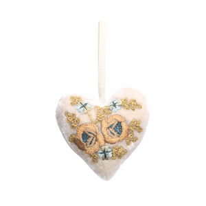 Miranda Blue + Gold Embroidered Silk Velvet Heart in Ice Blue