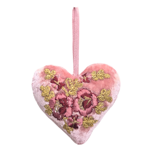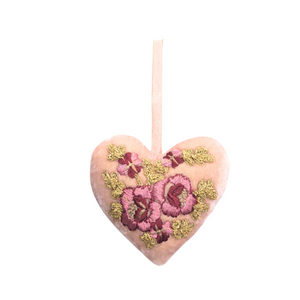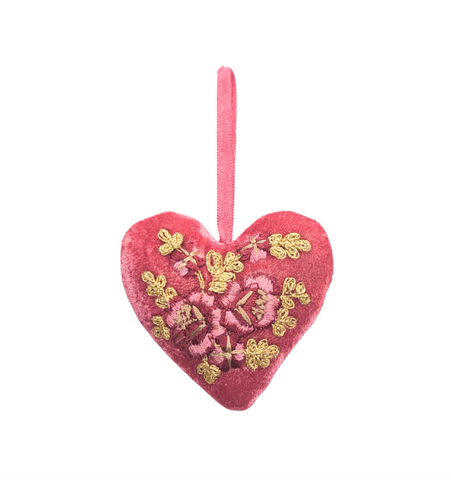 Miranda Red + Gold Embroidered Silk Velvet Heart in Pink Quartz