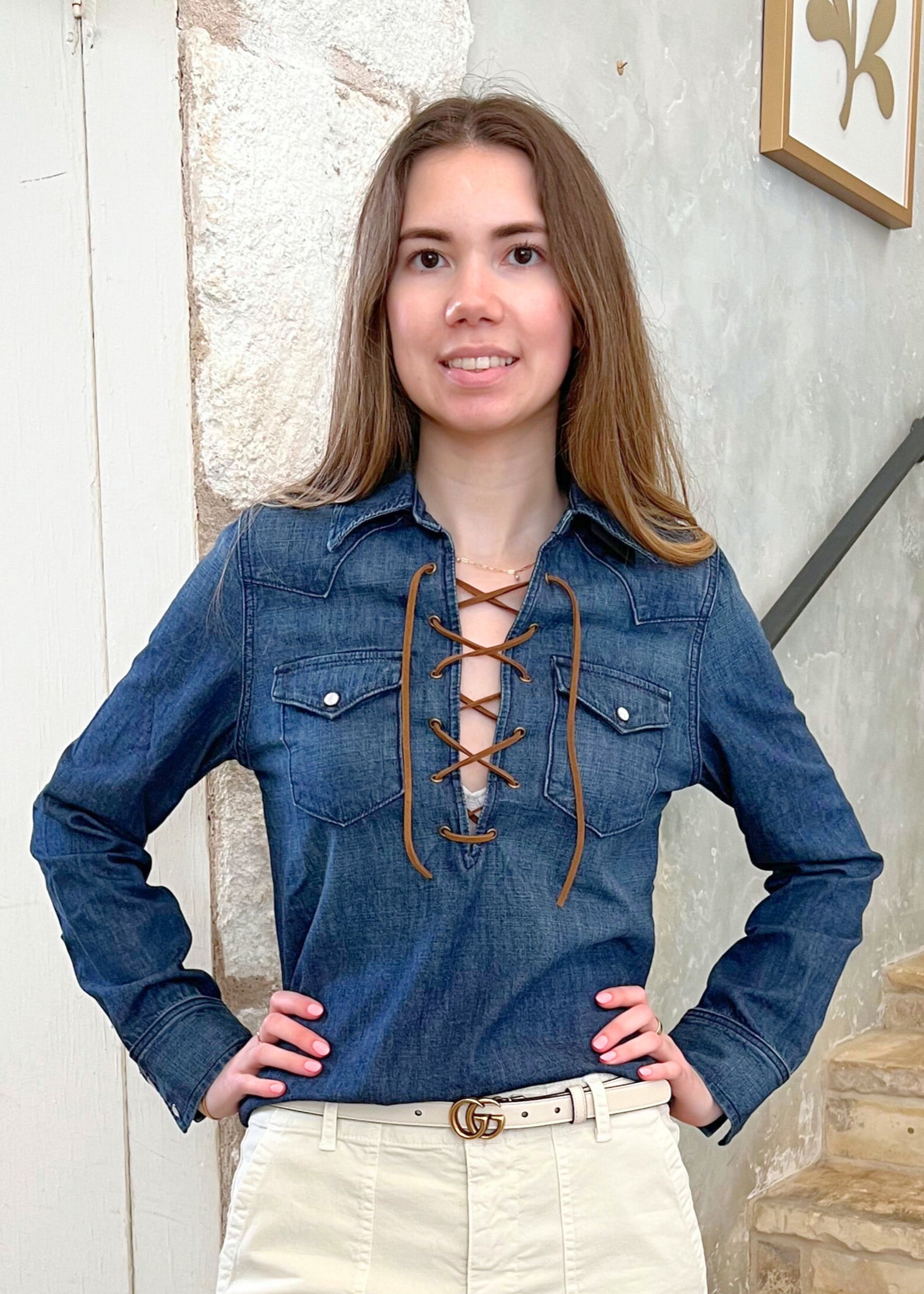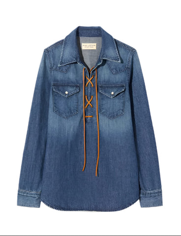 Collins Long Sleeve Lace-Up Denim Shirt in Classic Wash