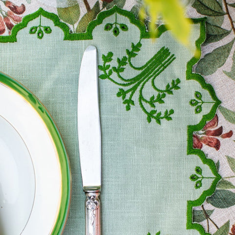 The Eden Solid placemat is made of pure linen with special stain-resistant treatment. The elegant embroidery on the edge is perfect for setting a table with classic elegance or a refined breakfast. The entirely hand-carved edge makes it an object of high tailoring made in Italy. Perfect when paired with the Eden napkins, but equally beautiful in combination with a simpler table setting.