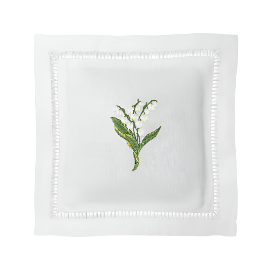 Hand embroidered lavender sachet on 100% linen, with hand drawn grande by hemstitch.