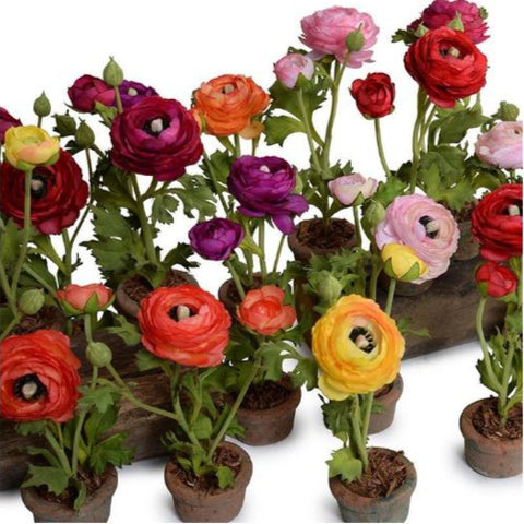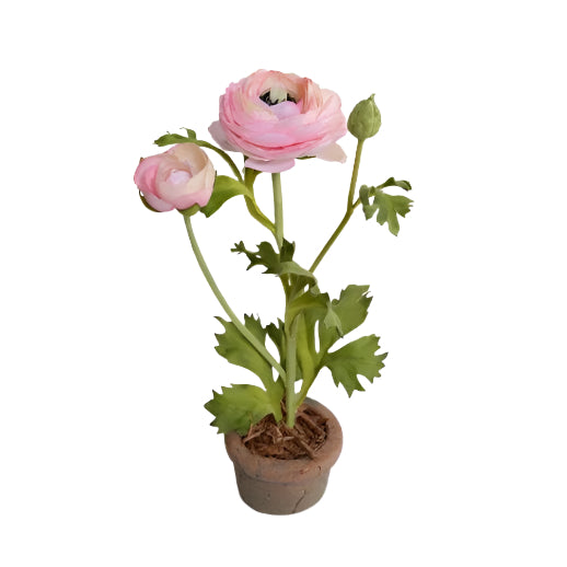 This sweet, whimsical ranunculus flower potted in a mini rustic terracotta pot works well on its own or in a group. Ranunculus plants are sure to add a vibrant burst of color to any interior. Delicately crafted by hand in North Carolina.