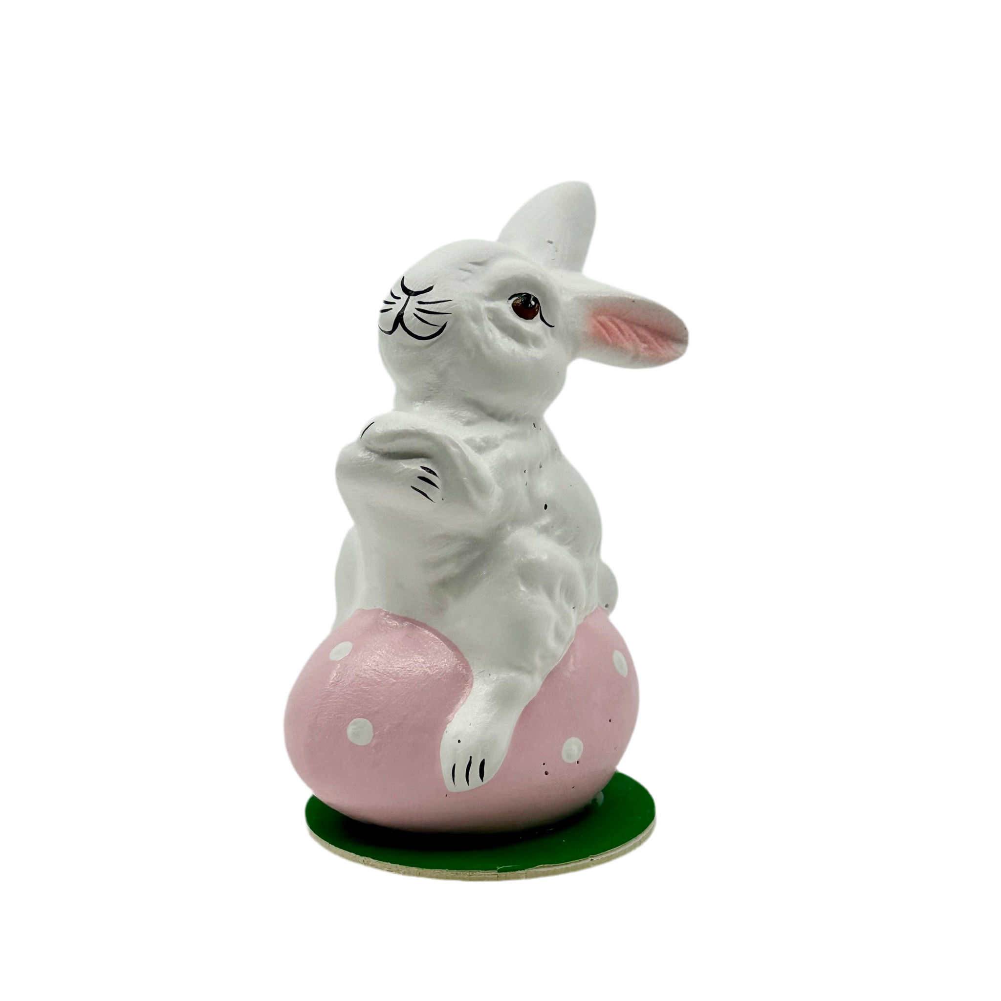 These charming Ino Schaller bunnies are a delightful blend of whimsy and tradition! Each handcrafted white bunny perches atop a pastel polka-dotted egg, bringing a sweet and nostalgic touch to Easter decor. With their expressions, they capture the magic of springtime in a way that feels both classic and endearing. Perfect for collectors or as a cherished seasonal accent.