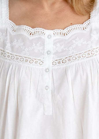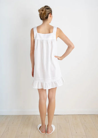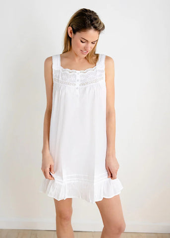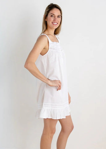 This popular flouncy nightgown with a short ruffled hemline and divine lace detail is great for nights at home when you want to look cute in something comfortable. The scalloped edge detail on the front differentiates this style from any other. The fabric is lightweight and perfect to keep cool on warmer nights.