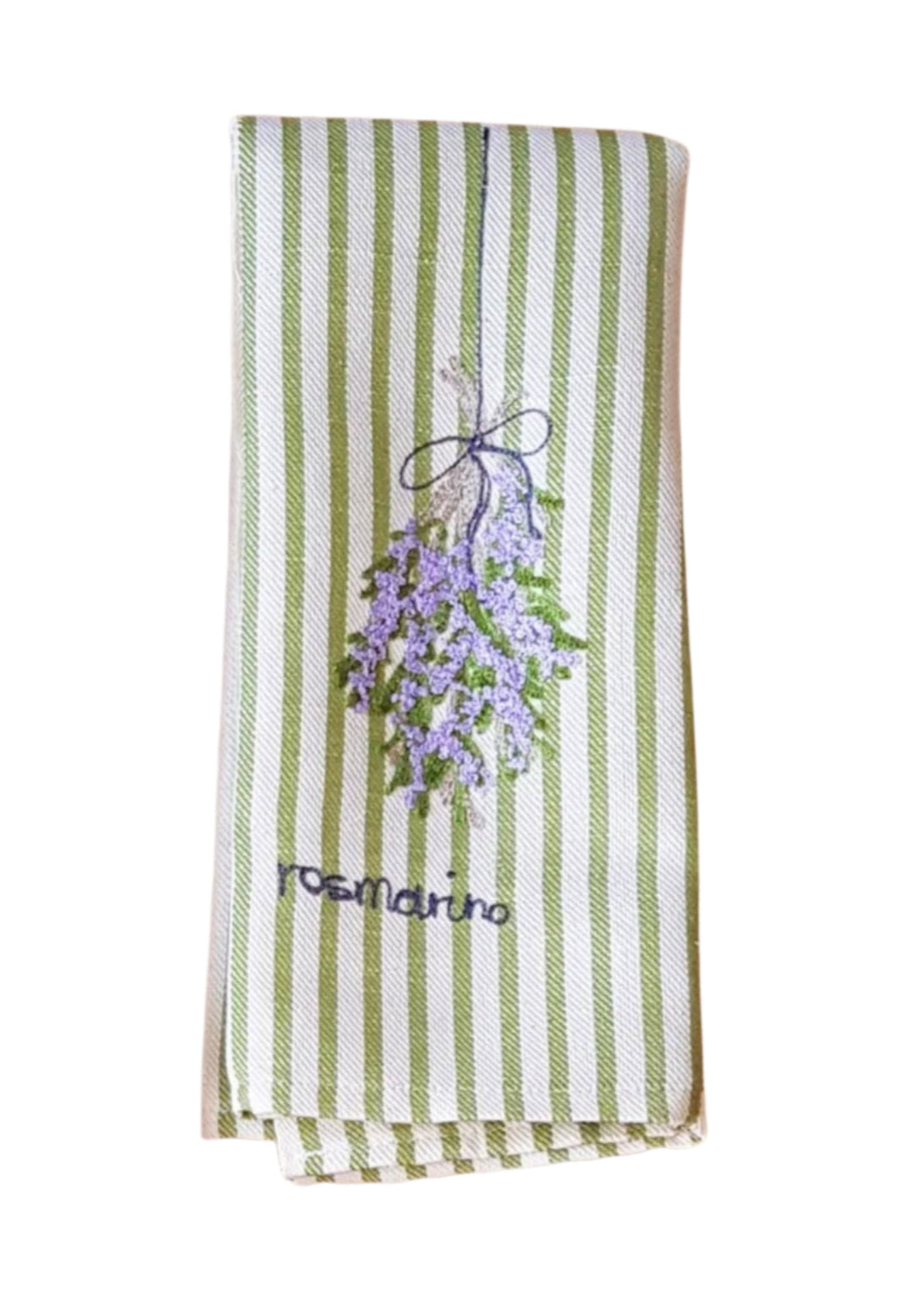 The "Rosemary" kitchen towel is made from the highest quality and completely processed in Italy. The dye is applied directly on the thread, not on the bolt, to grant a longer and more brilliant wear. Each product is finished and embellished by skilled and expert hands in Italy. You'll love these beautiful linens that get softer with each wash!