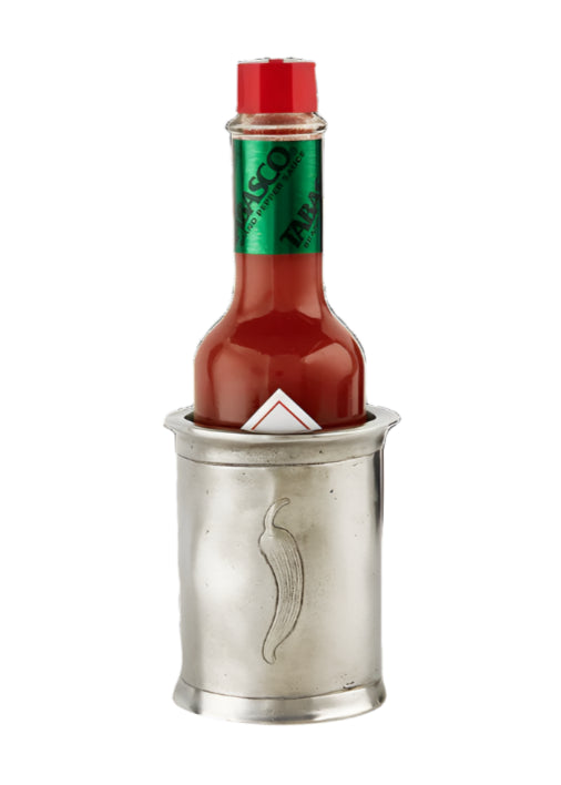 It seems like no one can get enough hot sauce nowadays. With this handsome pewter hot sauce holder, why not give it a stylish upgrade for the table and let it take its place among the classics. Charmingly engraved with a chili pepper for all to admire.